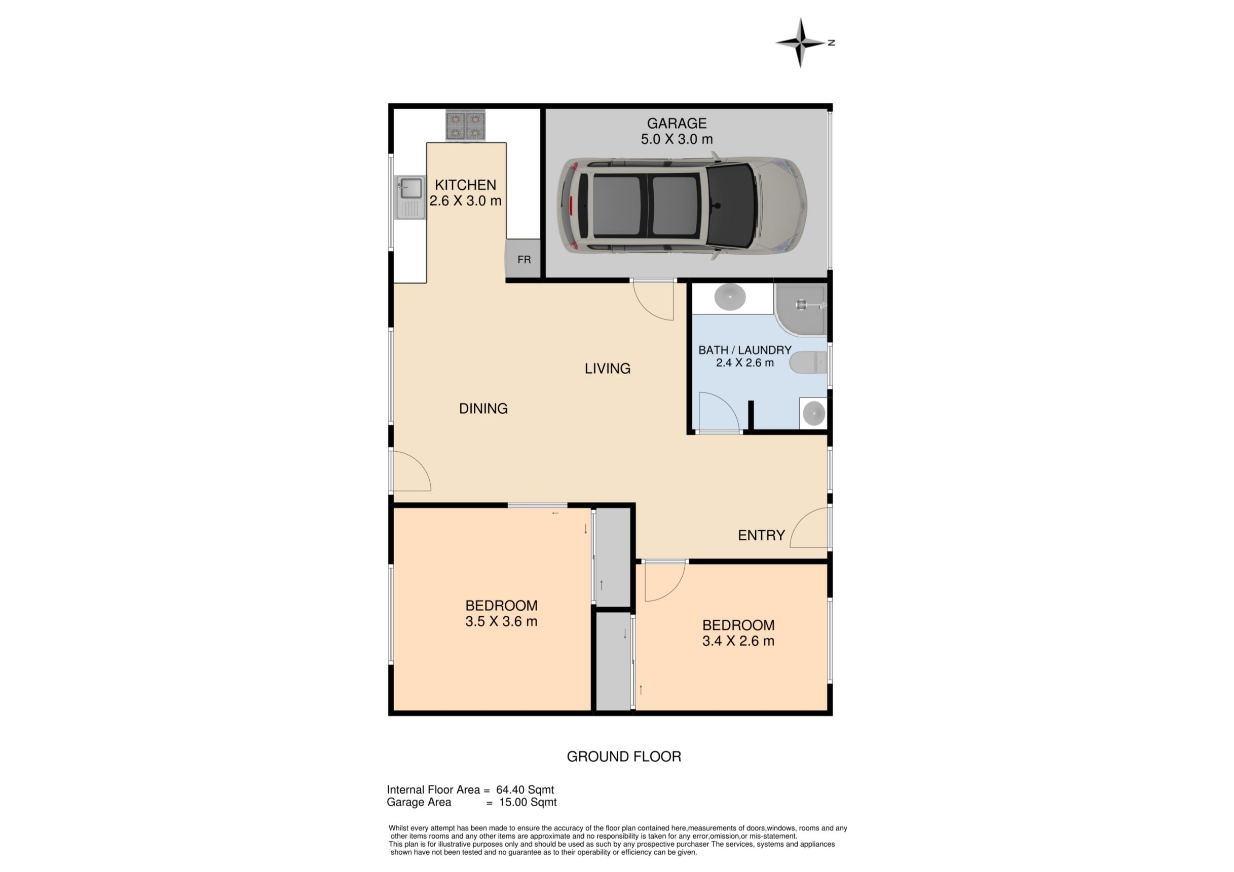 | 2 Bedrooms | 1 Bathrooms | 1 Car Space |