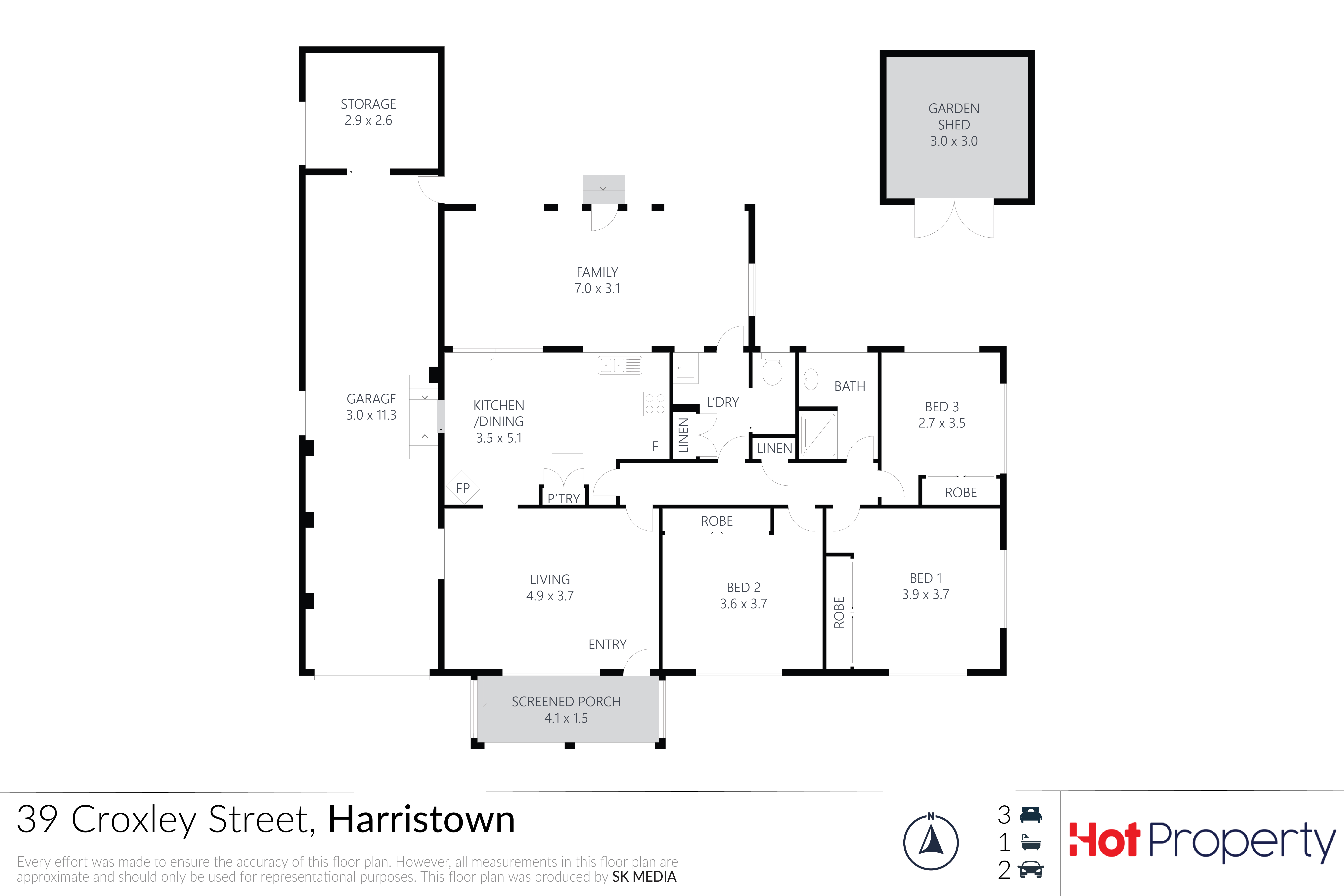 | 3 Bedrooms | 1 Bathrooms | 2 Car Spaces |